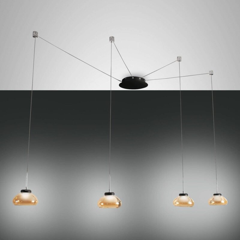 Závesné LED svetlo Arabella, 4-pl čierna/jantárová