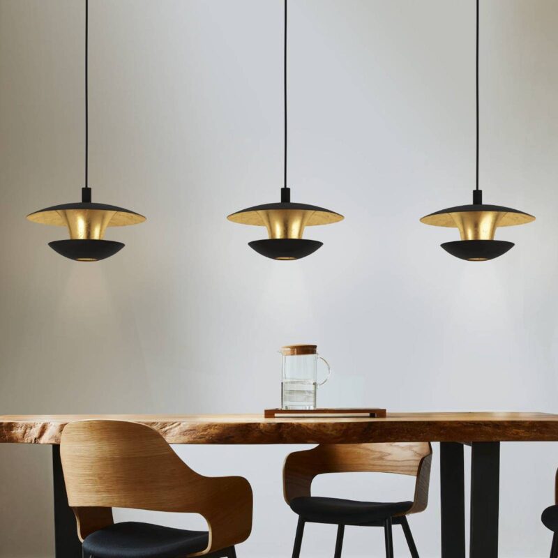 Závesné LED svetlo Nuvano, 3-pl., čierna/zlatá