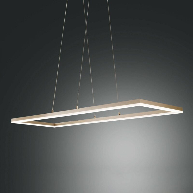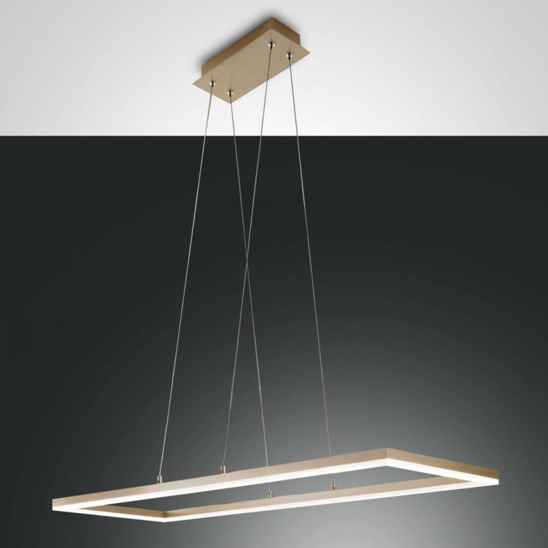 Elegantné a štýlové osvetlenie stola – závesné LED svietidlo Bard Závesné svietidlo Bard je vybavené modernou LED technológiou, ktorá je nielen výkonná, ale aj stmievateľná. Skladá sa z podlhovastého kovového rámu, ktorý má povrchovú úpravu matného zlata, a preto je dizajnovo veľmi elegantný a štýlový. Svietidlo s predĺženým rámom, ideálne pre jedálne alebo kuchynské stoly, ponúka osvetlenie bez oslnenia s teplou bielou farba svetla.