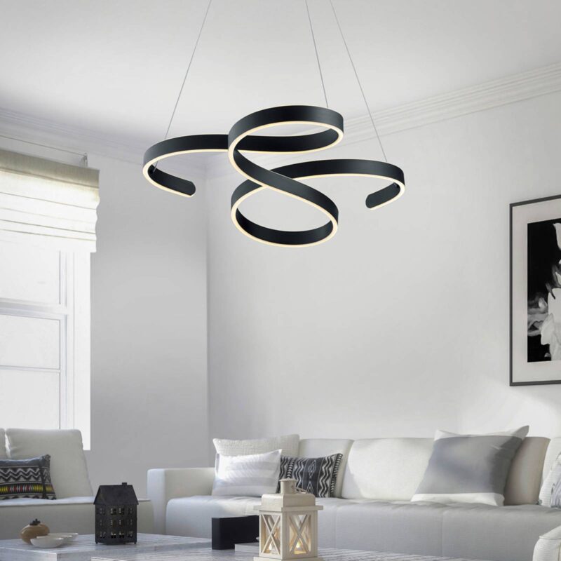 Výkonné závesné LED svietidlo Francis so zakriveným tienidlo na lampu Závesné svetlo Francis LED je absolútnym pútačom pozornosti v miestnosti, keď je vypnuté. Jeho tienidlo na lampu sa skladá zo širokého kovového pásu, ktorý sa efektne hadí cestou cez miestnosť. Ako svetelný zdroj sú nainštalované výkonné LED diódy vo farba svetla teplá biela, ktoré generujú vysoký svetelný tok a zaisťujú tak jasné a pohodlné osvetlenie okolia. S integrovanou funkciou SwitchDim, tj. Jas svetla je možné meniť pomocou bežného nástenného vypínača: 100% (spínač 1 x), 50% (spínač 2 x), 25% (spínač 3 x).