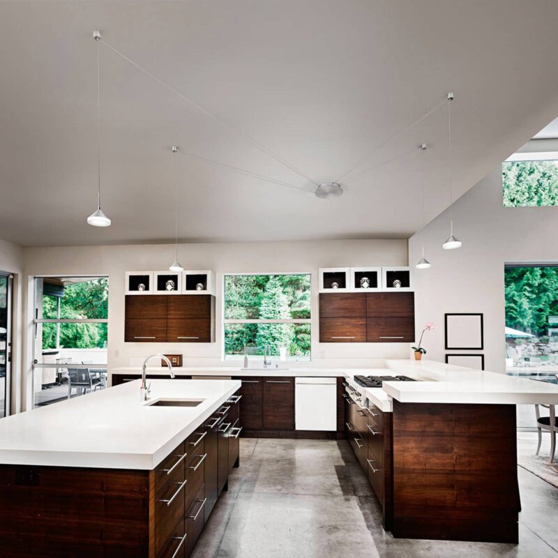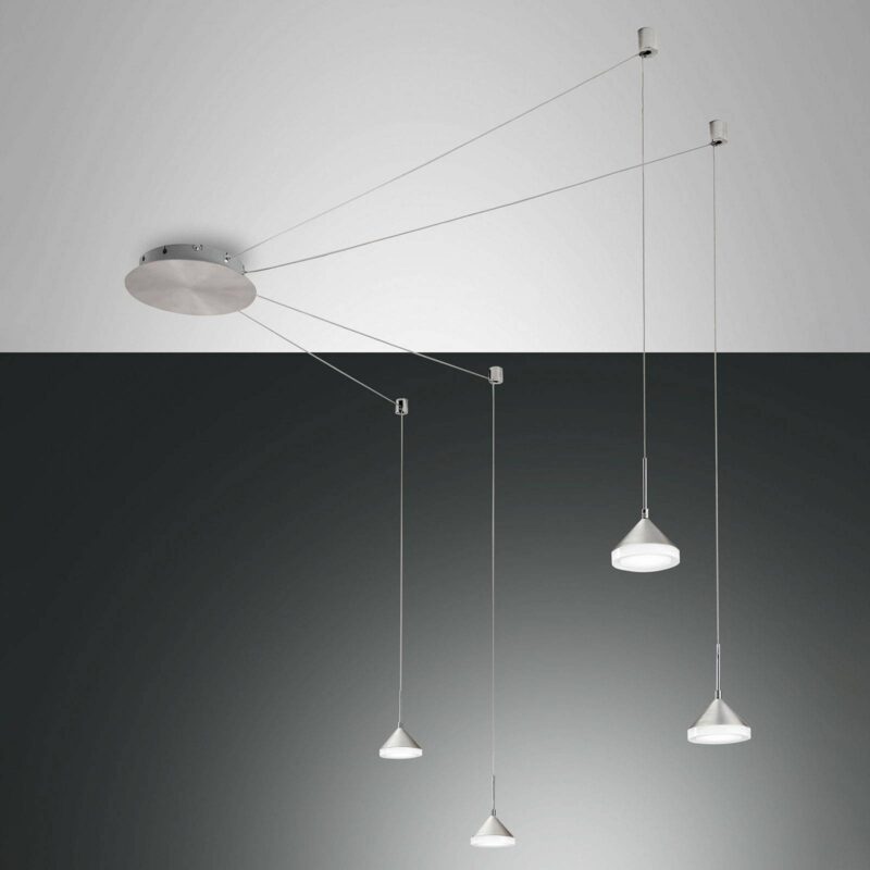 Moderné závesné svietidlo LED Isabella s ôsmimi otvormi Dizajn závesného svietidla Isabella LED je nielen vizuálne príťažlivý, ale aj mimoriadne funkčný a všestranný. K dispozícii je osem otvorov, aby sa jednotlivé káble závesného svietidla so štyrmi lampami dali flexibilne používať. Existujú teda rôzne možnosti, ako svietidlo v miestnosti nastaviť. Technológia LED prispieva nielen k vynikajúcej energetickej účinnosti modernej LED lampy. Závesné svietidlo je možné stmievať aj v kombinácii so stmievačom s fázovou alebo fázovou redukciou prostredníctvom domovej inštalácie. Závesné svietidlo Isabella vyžaruje príjemné, teplé biele svetlo – a vďaka štyrom bodovým zdrojom svetla vždy presne. Ak hľadáte závesné svietidlo, ktoré má predpoklady stať sa skutočným umeleckým dielom, v modeli Isabella určite nájdete to, čo hľadáte.