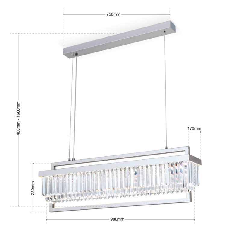 Závesné LED svietidlo Prism, podlhovasté chróm