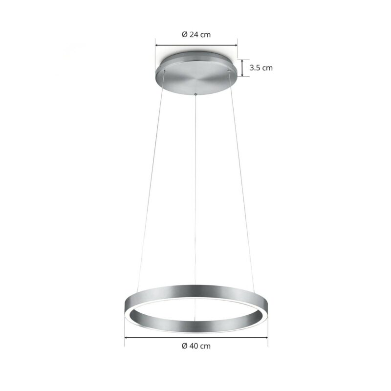 Stmievateľné závesné svietidlo LED Svea-40 s ovládaním gestami Závesné svietidlo LED Svea-40 je mimoriadne praktické. Pozostáva zo zaveseného kovového kruhu s LED diódami v hornej a dolnej časti. Tým sa vytvára nepriame a priame osvetlenie. Senzory na hornej a dolnej strane umožňujú samostatné a plynulé nastavenie intenzity osvetlenia podľa potreby. Krátkym pohybom ruky nad snímačmi sa svietidlo zapne alebo vypne. Ak ruka zostane nad senzorom dlhšie, Svea-40 sa stlmí na maximálny svetelný výkon a následne sa stlmí. – Výška zavesenia nastaviteľná od 75 do 250 cm po montáži