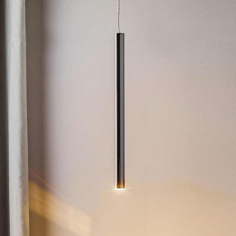 Závesné svietidlo LED Varas s moderným dizajnom – chrómová povrchová úprava Toto závesné svietidlo LED upúta pozornosť aj bez osvetlenia vďaka svojmu minimalistickému dizajnu a je ideálnou voľbou do moderného obytného prostredia. Varas zaujme rúrkovým kovovým tienidlom s malým priemerom, ktoré cielene vyžaruje svetlo inštalovaných LED diód. Varas je preto ideálny na osvetlenie stola alebo – v niekoľkých exemplároch zavesených za sebou – na atmosférické osvetlenie pultu. Jas svietidla možno regulovať aj pomocou externého stmievača.