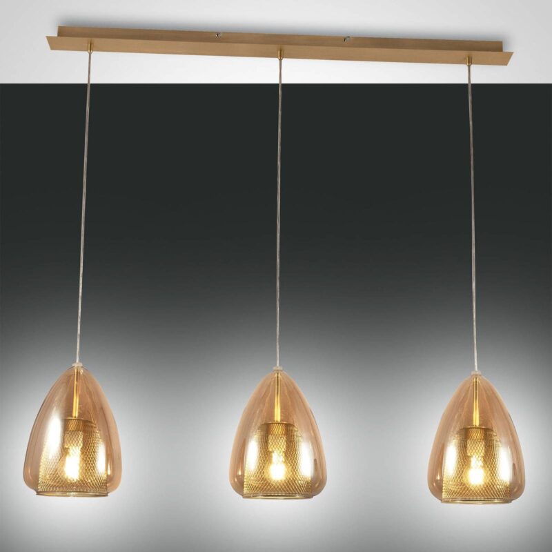 Závesné svetlo Britton, 3-plameňové, jantárové