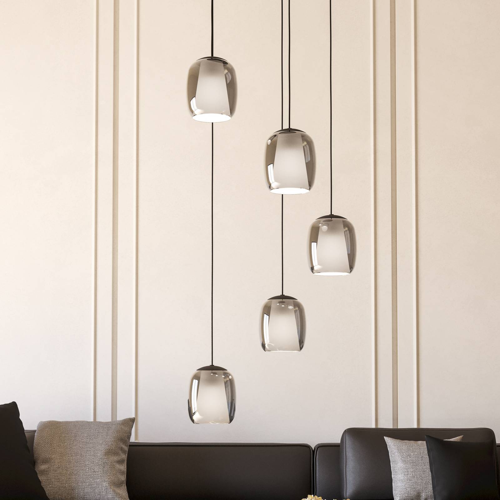 Závesné svietidlo Ciampino, čierne, 5 svetiel.