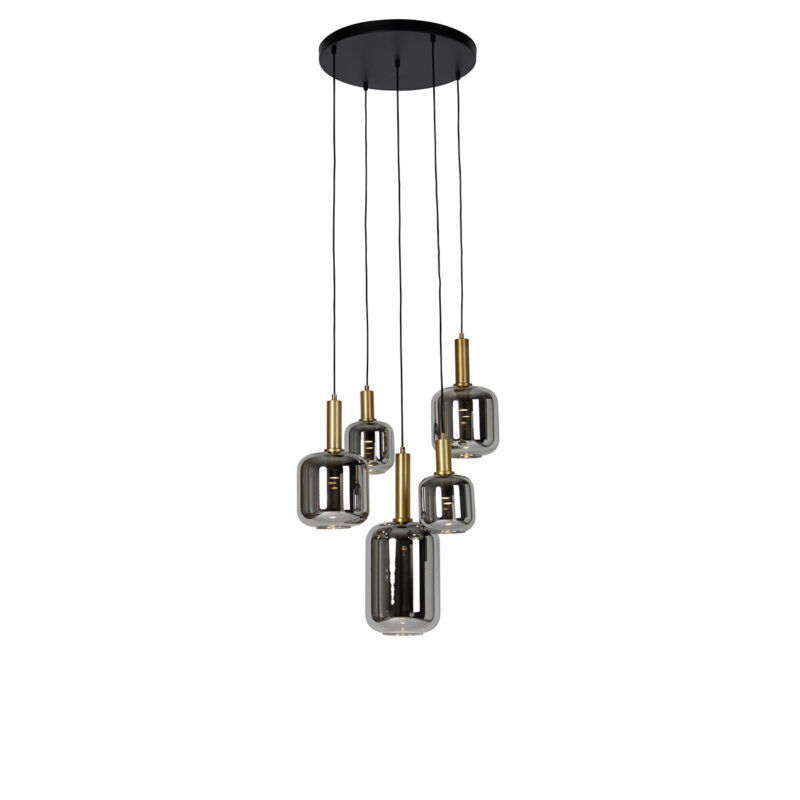 Závesné svietidlo čierne so zlatom s dymovým sklom vrátane 5 PUCC – Zuzanna
