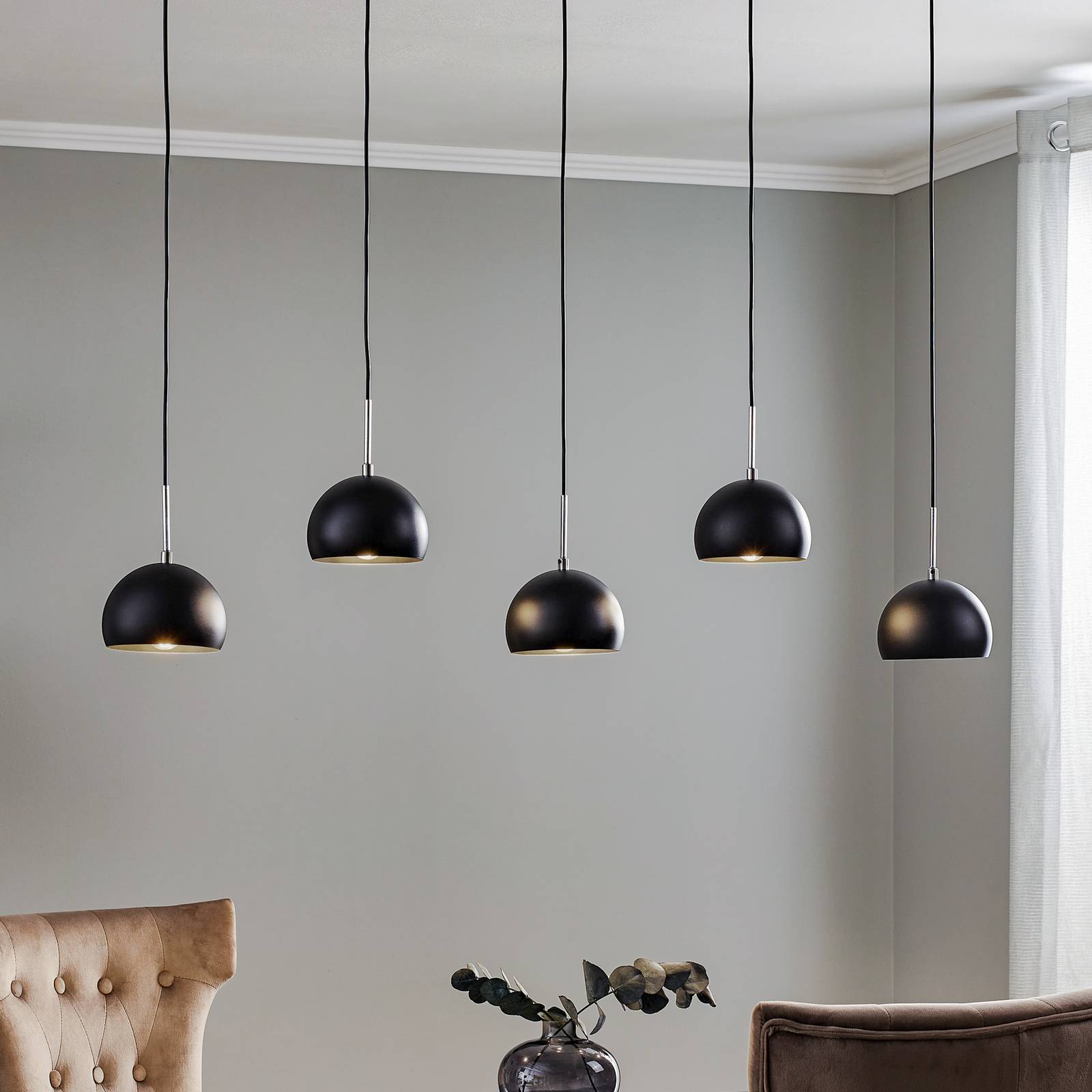 Závesné svietidlo Cool, 5-plameňové dlhé, čierne