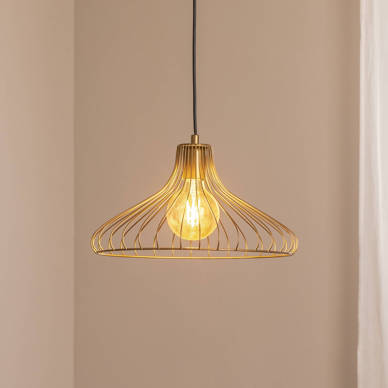 Závesné svietidlo Depay: elegancia spojená s univerzálnym stmievateľným Závesné svietidlo Depay zaujme svojím štýlovým dizajnom z kovu v elegantnej zlatej farbe. Toto svietidlo je pútavým prvkom v každej miestnosti, či už v obývacej izbe, jedálni alebo v kuchyni. Vďaka svojmu nadčasovému dizajnu sa bez problémov hodí do rôznych štýlov zariadenia a dodáva mu štýlový akcent. Zvláštnosťou závesného svietidla Depay je jeho stmievateľnosť, ktorú umožňuje externý stmievač. Táto funkcia umožňuje individuálne prispôsobiť intenzitu osvetlenia a vytvoriť tak požadovanú atmosféru. Či už na relaxačné večery alebo produktívne hodiny, závesné svietidlo Depay ponúka flexibilitu prispôsobiť osvetlenie aktuálnym potrebám.