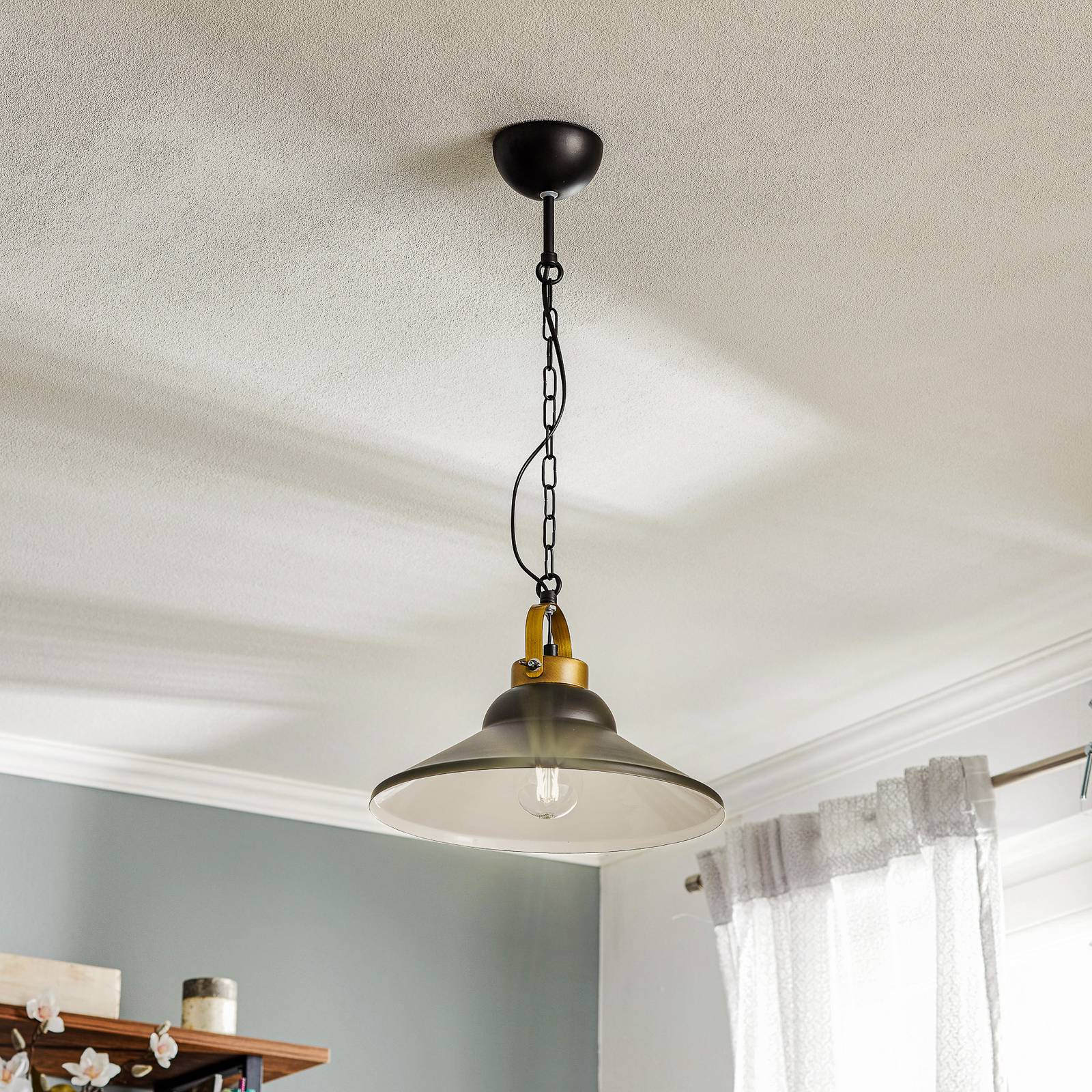 Závesné svietidlo Iron, čierna/biela/antická mosadz