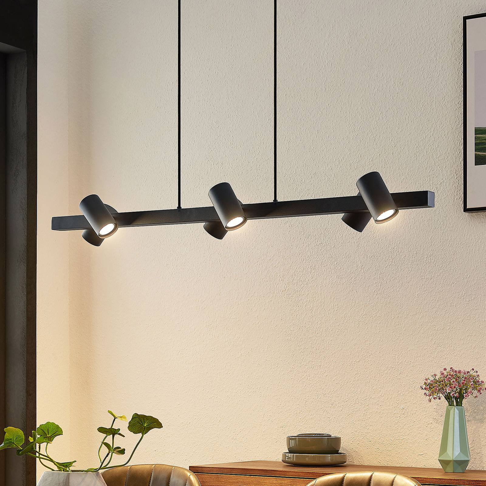 Závesné svietidlo Lindby Savoli, 116 cm, čierne, 6 svetiel, oceľ