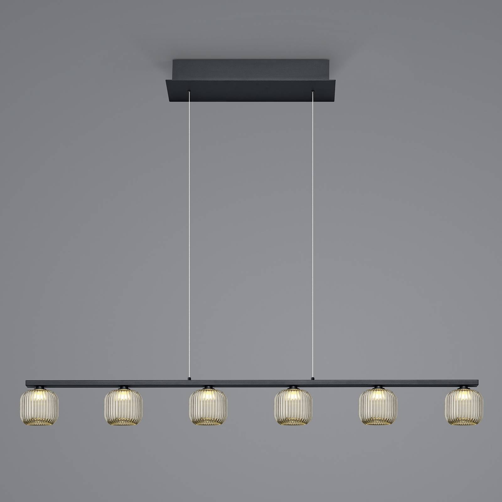 Závesné svietidlo Loft LED s dymovým sklom, šesť svetiel