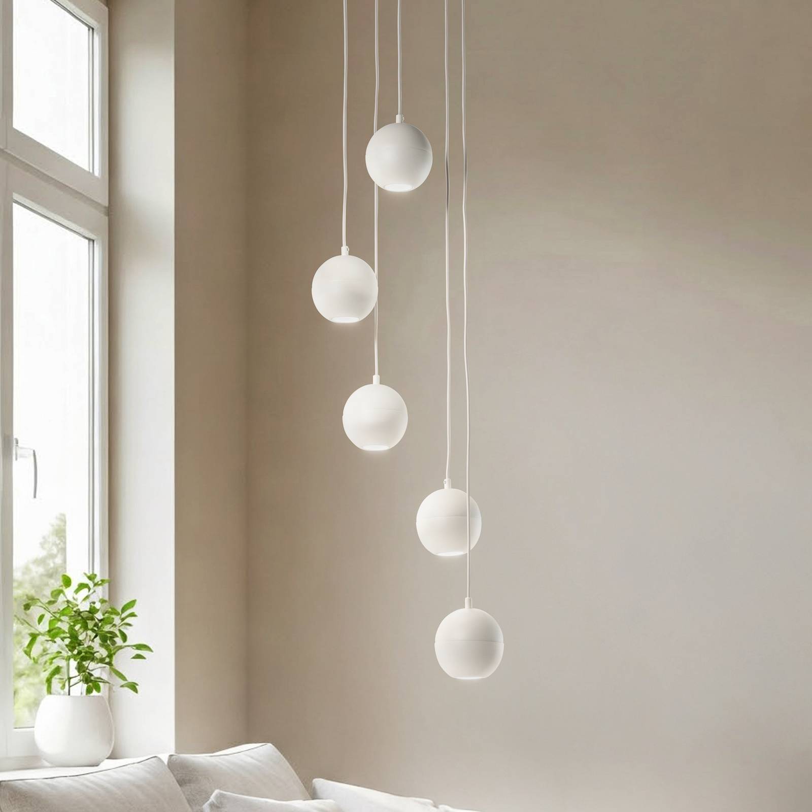 Závesné svietidlo Midway, piesková farba, 5-pl., Ø 35 cm, GU10