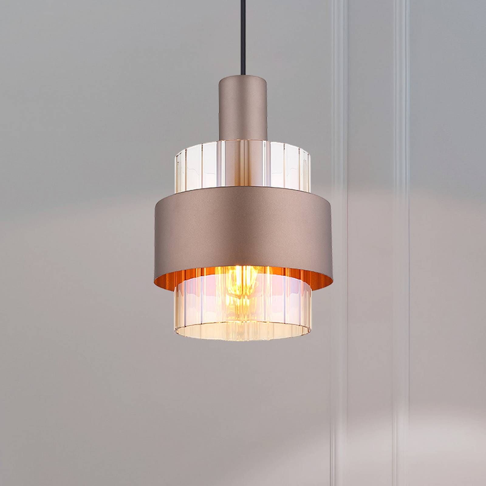 Všestranné závesné svietidlo Milley – 1-plameňové Závesné svietidlo Milley kombinuje moderný dizajn s materiálmi ako kov a sklo. Jej bronzovo sfarbený povrch dokonale ladí s farebným gradientom skla od jantárovej po číru farbu, čím vytvára štýlovú atmosféru. Toto svietidlo je ideálne do rôznych miestností, ako sú obývacia izba, jedáleň, kuchyňa a chodba, a dokonale sa hodí k moderným štýlom zariadenia – Externe stmievateľné
