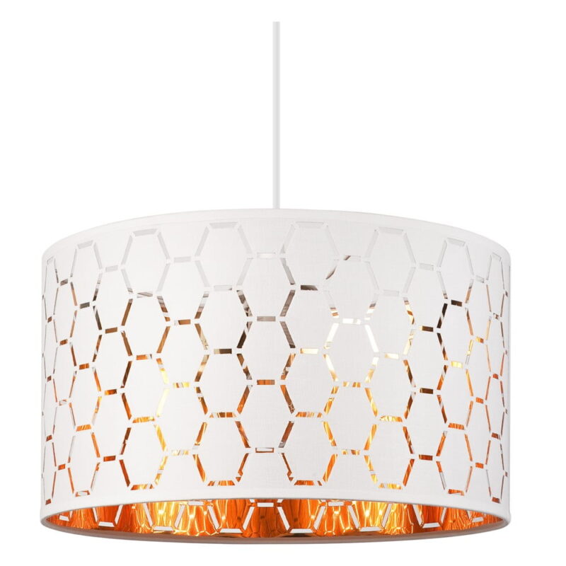 Domovská stránka » Katalóg » Závesné svietidlo s textilným tienidlom v bielo-zlatej farbe ø 35 cm Ulle – LAMKUR