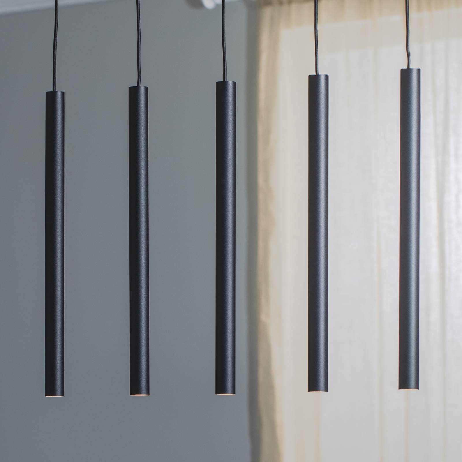 Závesné svietidlo Sone, baldachýn hranatý, 5-pl., čierne