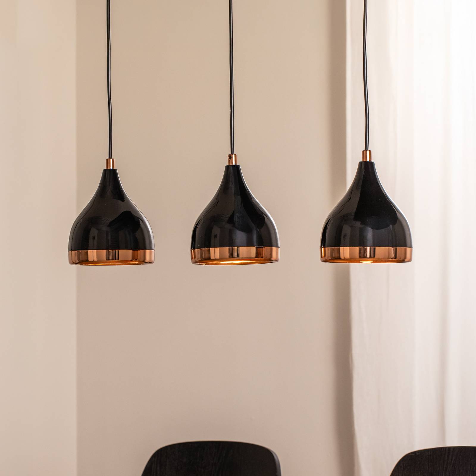 Závesné svietidlo Yildo: elegancia spojená s funkčnosťou Závesné svietidlo Yildo, 3-plameňové svietidlo v čiernej a medenej farbe, stelesňuje modernú eleganciu a ponúka ideálne riešenie osvetlenia pre obývačku a jedálenský kút. Lineárne usporiadanie svietiacich prvkov vytvára harmonické rozloženie svetla, ktoré ponorí miestnosť do príjemnej atmosféry. Hoci stmievač nie je súčasťou dodávky, intenzitu svetla je možné individuálne prispôsobiť inštaláciou externého stmievača, aby sa vytvorila požadovaná atmosféra. S svietidlom Yildo sa každá miestnosť stane miestom, kde svetlo nielen plní funkčnú úlohu, ale aj výrazne prispieva k vytvoreniu príjemnej atmosféry.