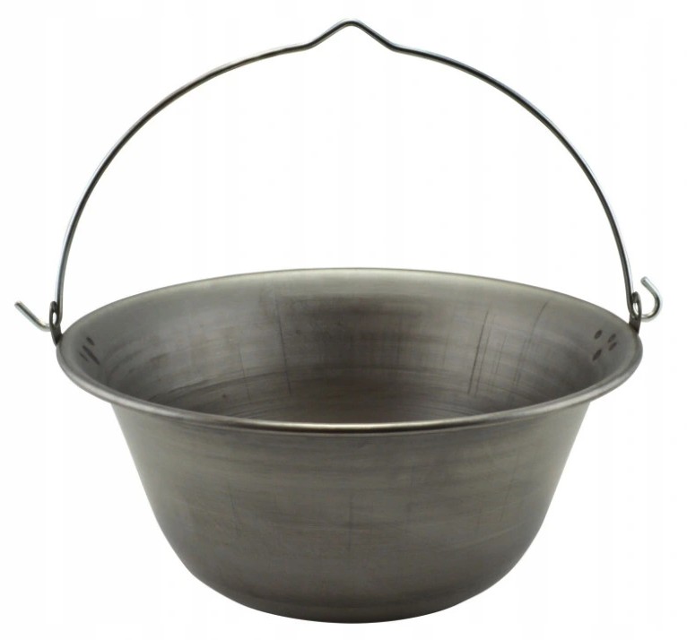 Závesný kotlík nad ohniskom spríjemní chvíle strávené s rodinou a priateľmi a chutné jedlá uspokoja chute aj tých najnáročnejších účastníkov hodovania. Kotlík je vyrobený z kvalitného kovu, starostlivo opracovaný a vnútro kotlíka je hrubé čo zabraňuje prilepeniu jedla na steny kotlíka a výrazne uľahčuje jeho čistenie. Optimálne navrhnutá hrúbka steny a dna zaisťuje rovnomerný ohrev celej plochy. Pevná a odolná konštrukcia zabezpečí používanie kotlíka po dlhé roky.
