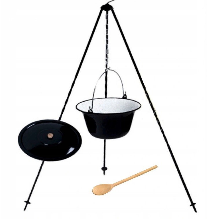 Zavesený kotlík nad ohniskom spríjemní chvíle strávené s rodinou a priateľmi a chutné jedlá uspokoja chute aj tých najnáročnejších účastníkov hodovania. Kotlík je vyrobený z kvalitnej smaltovanej ocele, starostlivo opracovaný a vypálený pri vysokej teplote, ktorá ovplyvňuje jeho odolnosť a klimatické faktory. Vnútro kotlíka je hrubé čo zabraňuje prilepeniu jedla na steny kotlíka a výrazne uľahčuje jeho čistenie. Optimálne navrhnutá hrúbka steny a dna zaisťuje rovnomerný ohrev celej plochy. Pevná a odolná konštrukcia zabezpečí používanie kotlíka na dlhé roky.