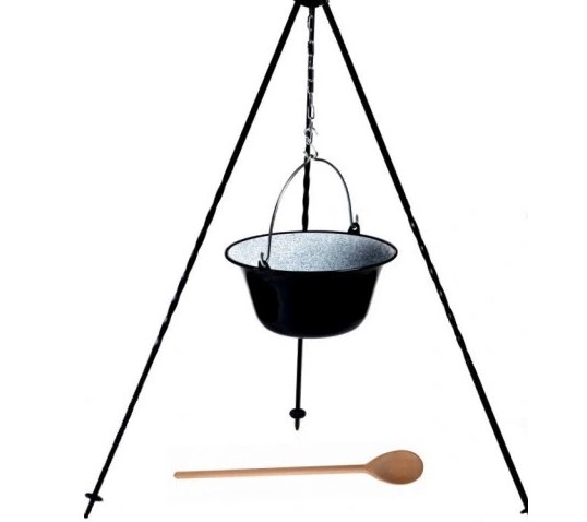 Zavesený kotlík nad ohniskom spríjemní chvíle strávené s rodinou a priateľmi. Kotlík je vyrobený z kvalitnej smaltovanej ocele, starostlivo opracovaný a vypálený pri vysokej teplote, ktorá ovplyvňuje jeho odolnosť a klimatické faktory. Vnútro kotlíka je hrubé čo zabraňuje prilepeniu jedla na steny kotlíka a výrazne uľahčuje jeho čistenie. Optimálne navrhnutá hrúbka steny a dna zaisťuje rovnomerný ohrev celej plochy. Pevná a odolná konštrukcia zabezpečí používanie kotlíka na dlhé roky.