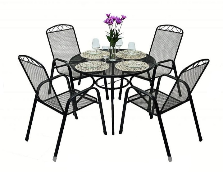 Výnimočný a nadčasový kovový záhradný set ZAZU 4+1, v modernom a štýlovom dizajne. Oceníte jeho jednoduchú údržbu ako aj dostupnú cenu. Zostava sa skladá z prvkov:4x kreslo BABU – rozmery ( Š x V x H cm) 56 x 93 x 69 cm1x stôl ZAZU – rozmery ( Š x V cm) 106 x 71 cmVýška sedu kresla je 43 cmotvor na slnečník 43 mmDiely je možné zakúpiť aj samostatne.Farebné prevedenie : čierna.Dodávame v demonte.