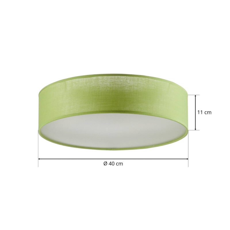 Svieža farebná bodka interiéru: stropné svietidlo Jitendra so zeleným textilným tienidlom Praktické, útulné a zároveň zvýrazňujúce – také je stropné svietidlo Jitendra, ktoré ponúka vďaka tienidlu so stropnou clonou a trom vnútri umiestneným objímkam (na žiarovky E14) praktické riešenie všeobecného osvetlenia takmer všetkých miestností domu. Textilné tienidlo dodáva svietidlu určitú útulnosť, čo má pozitívny vplyv na atmosféru napr. v obývacej izbe alebo spálni. Svojím zeleným látkovým tienidlom vytvára Jitendra v priestore výnimočný akcent. Aby svetlo troch žiaroviek (ktoré nie sú súčasťou balenia) neoslepovalo, je stropné svietidlo Jitendra na spodnej strane uzatvorené krytom z plexiskla.