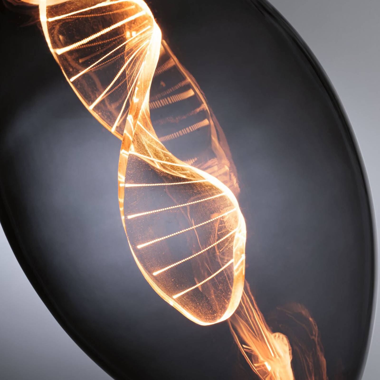 LED žiarovka E27 3,5 W Filament Helix, 1 800 K s dymovo sivým tónovaným sklom Táto LED žiarovka E27 z edície Inner Glow sa vyznačuje dekoratívnym efektom a príjemným svetlom. LED diódy boli nainštalované v špeciálnom tvare do dymovo sivého tónovaného skla a laserové gravírovanie zabezpečuje úplne neoslňujúce vyžarovanie extra teplého zlatého svetla, zatiaľ čo svietiaci krúžok na konci žiarovky zabezpečuje priame vyžarovanie svetla smerom nadol. Tento svetelný zdroj premení každé otvorené svietidlo na pútač pohľadov – teplé zlaté svetlo 1 800 K – vhodné len na dekoratívne osvetlenie, nie na všeobecné osvetlenie