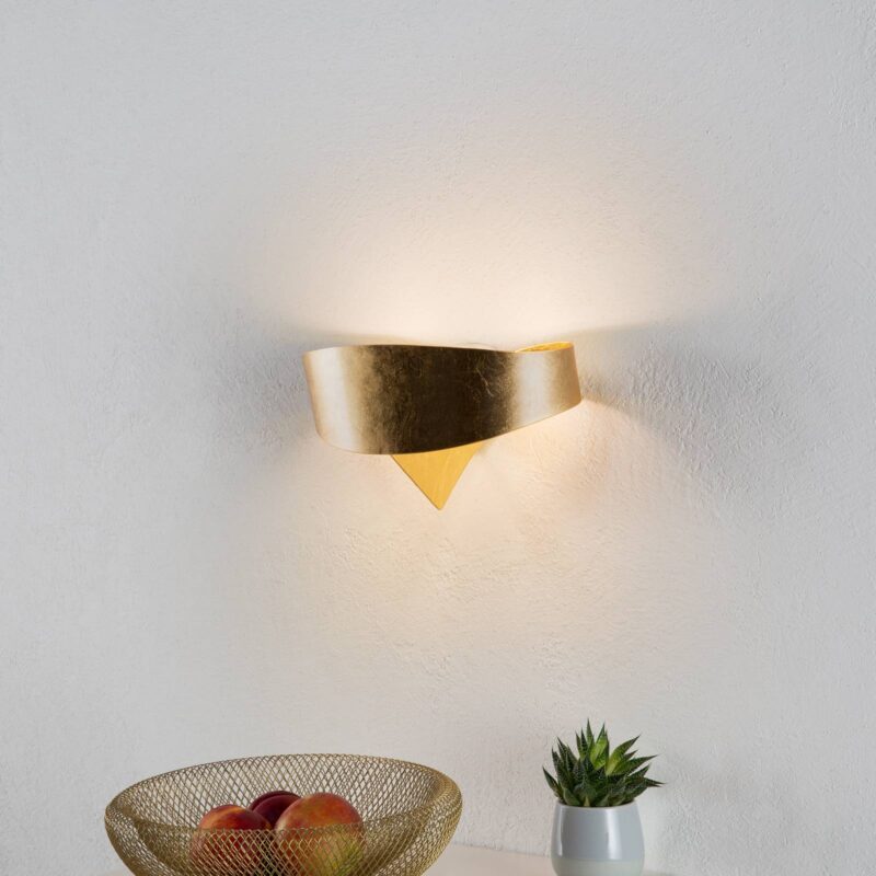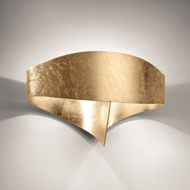 Nástenné svietidlo Scudo v dizajnérskej kvalite Vysokokvalitné nástenné svietidlo Scudo kombinuje najkvalitnejšie materiály a výrobné technológie. Elegantne tvarovaný oceľový pás sa najprv vyreže laserom a potom sa ručne ohýba a dokončí plátkovým zlatom. Svietidlový objekt nie je len funkčným predmetom na osvetlenie miestnosti. Je to skôr umelecká dizajnová skulptúra, ktorá dodáva interiéru luxusný a štýlový akcent.