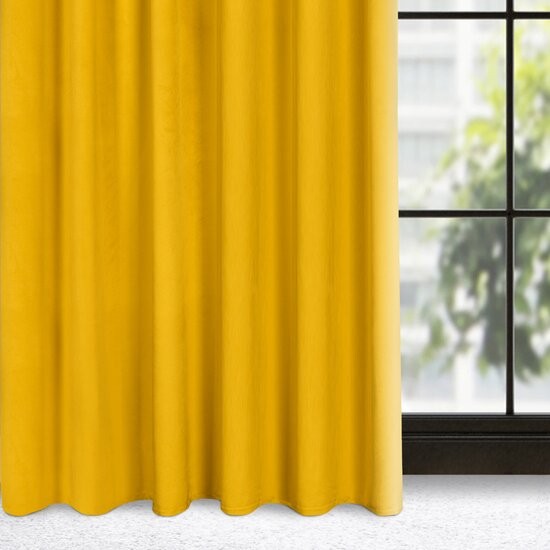 Žltý zamatový záves Madlen so zavesením na riasiacu pásku 140 x 300 cm