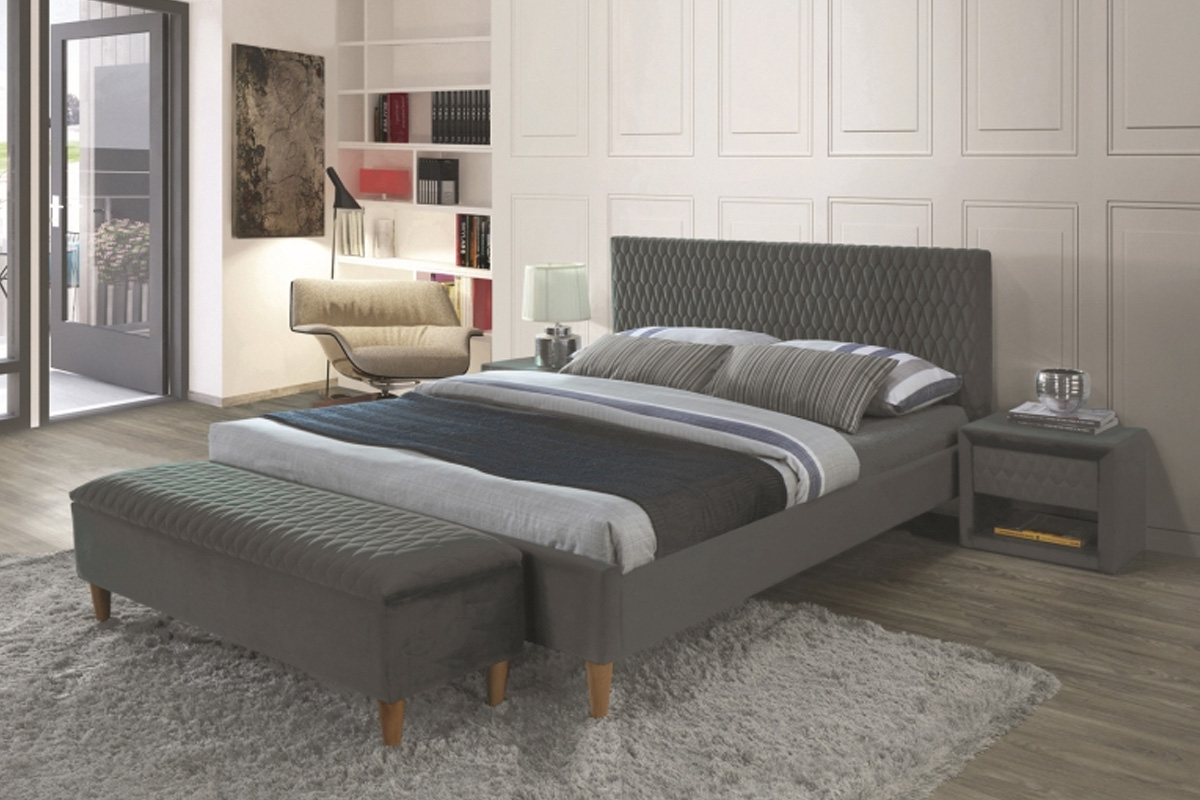 Posteľ ZORRO 160 patrí medzi čalúnené postele. Je vyrobená v módnom a žiadanom farebnom prevedení, vďaka čomu jednoducho prispôsobíte zvyšok interiéru a doplnkov. Posteľ zaujme vyvýšeným čelom, ktoré vďaka prešívaniu vytvýra efektný vzor. Ponúka pohodlnú spaciu plochu 160 x 200 cm.Vysoká opierka zabezpečí pohodlné opretie hlavy a chrbta. Súčasne ochráni stenu pred oderom. Posteľ stojí na nožičkách z masívu v prírodnej farbe. Čalúnená je kvalitnou látkou BLUVEL 14, s vodnou membránou, v sivom farebnom prevedení. Súčasťou postele sú 2 lamelové rošty. Matrac je potrebné si doobjednať. Odporúčame rozmer 160 x 200 alebo 2 ks – 80 x 200 cm.Rozmery (š/v/h): 165 x 96 x 206 cm. Ostatné rozmery sú uvedené v centimetroch a zobrazené na obrázku.Dodávame v demonte v 3 kartónoch. Ku posteli si môžete doobjednať aj nočné stolíky a taburetku ZORRO.