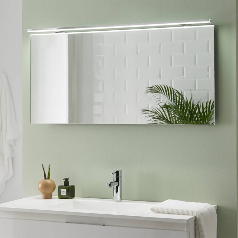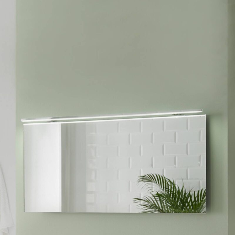 Výkonná LED zrkadlo svetlo lampa Esther2 pre veľké zrkadlá LED zrkadlo svetlo svetlo Esther2 boduje moderným tenkým dizajnom, ktorý je možné ľahko integrovať do takmer každého zariadenia. Vstavaný modul LED je jasný a úsporný z hľadiska spotreby energie. Táto krásna lampa so šírkou 100 cm a veľkorysým uhlom lúča 110 ° zaisťuje najlepšie svetelné podmienky v kúpeľni a je vhodná aj na osvetlenie väčších zrkadiel.