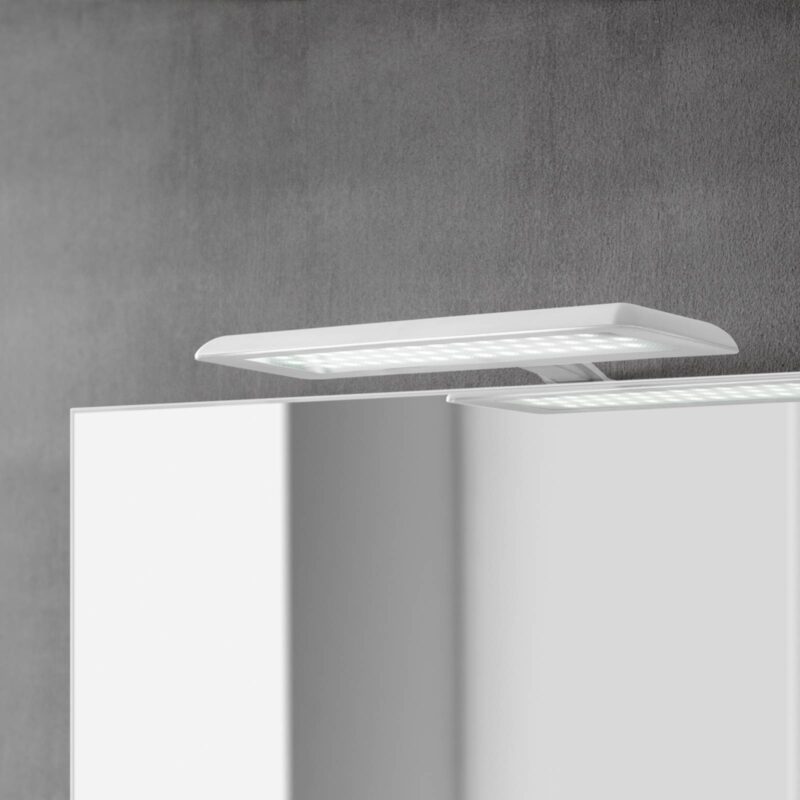 Zrkadlové LED svietidlo Nikita na osvetlenie kúpeľne Zrkadlové LED svietidlo Nikita v oceľovosivej a bielej môže byť pripevnené k zrkadlám, zrkadlovým skrinkám alebo iným kusom nábytku. Korpus je vyrobený z polykarbonátu. Cez vysokokvalitný plastový difuzér vyžarujú vstavané diódy LED svetlé denné svetlo pod uhlom 120°. 30 cm široké svietidlo Nikita nevyžaduje budič LED; môže byť priamo pripojené na 230 V, čo je veľkou výhodou najmä pre zrkadlové svietidlá.