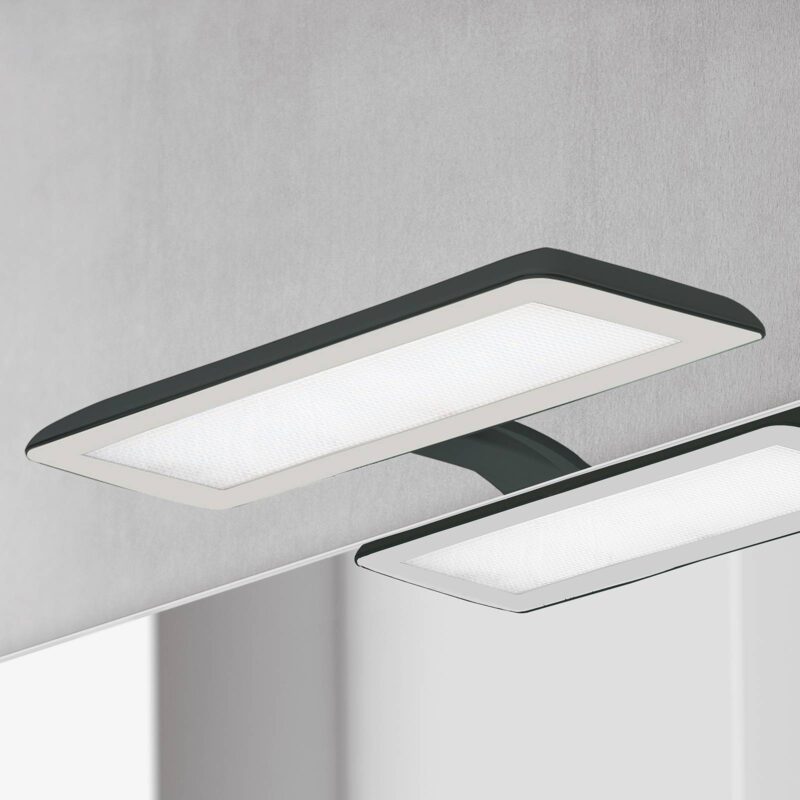 Moderný svetelný zdroj do kúpeľne – LED zrkadlo svetlo svetlo Nikita Nikita je vyrobená z polykarbonátového plastu. Svietidlo je možné namontovať priamo na zrkadlá, ako aj na zrkadlové skrinky a iný nábytok. Veľmi plochá tienidlo na lampu s LED diódami je orientovaná nadol. Biele denné svetlo vyžarované pod uhlom 120 ° ponúka vynikajúce osvetlenie pre presný výhľad pri precíznej práci. S dodávanou pripojovacou skrinkou, ktorá má 35 cm dlhý pripájací kábel k svetlu, je zrkadlo svetlo svetlo Nikita LED pripojené priamo k elektrickej sieti 230 V.