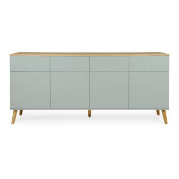 Zelený štvordverový príborník s detailmi v dekore dubového dreva so 4 zásuvkami Tenzo Dot