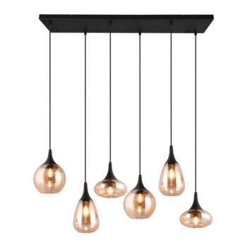 Čierno-oranžové závesné svietidlo so skleneným tienidlom Lumina – Trio