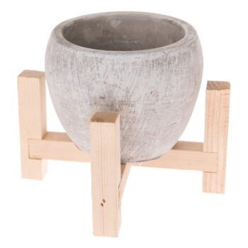 Sivý betónový kvetináč v drevenom stojane Dakls Natural, ø 13 cm