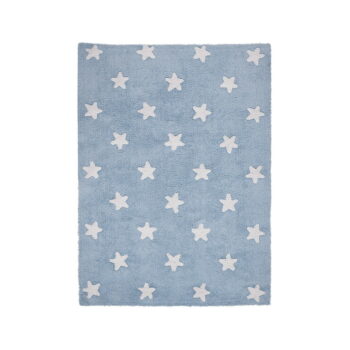 Modrý prateľný ručne tkaný bavlnený detský koberec 120×160 cm Stars – Lorena Canals