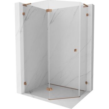 MEXEN/S – Lunar L sprchový kút päťboký krídlový pravá 100×100, transparent, meď kartáčovaná 831L-100P-100L-65-00-P