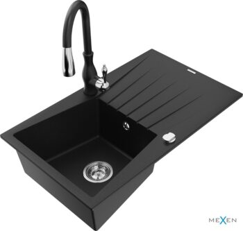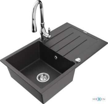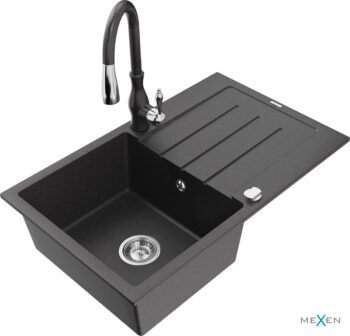 MEXEN/S MEXEN/S – Cesar granitový drez 1 s odkvapkávačom vrátane batérie Savita, čierna 6514-77-672601-70-B