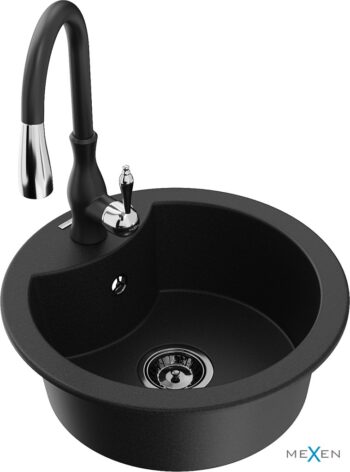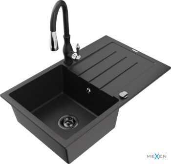 MEXEN/S MEXEN/S – Diego granitový drez 1-miska vrátane batérie Savita, čierna 6512-77-672601-70-B