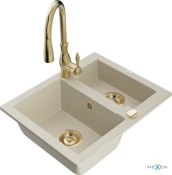 MEXEN/S MEXEN/S – Carlos granitový drez 1.5 vrátane batérie Savita, béžová 6518-69-672601-70
