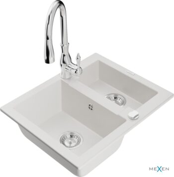 MEXEN/S MEXEN/S – Carlos granitový drez 1.5 vrátane batérie Savita, biela 6518-20-672601-00