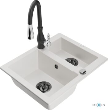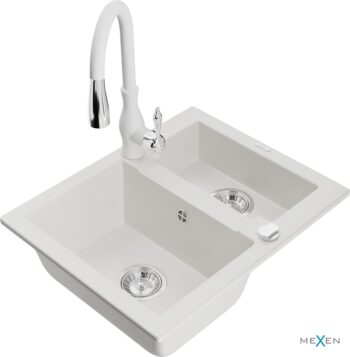 MEXEN/S MEXEN/S – Carlos granitový drez 1.5 vrátane batérie Savita, biela 6518-20-672601-20