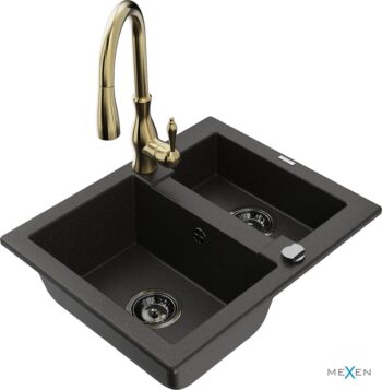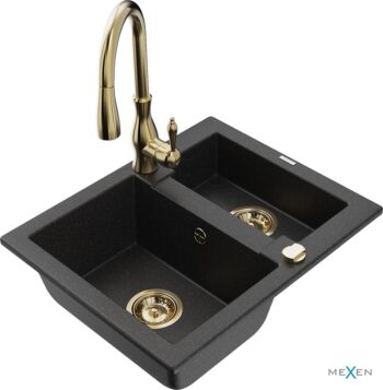 MEXEN/S MEXEN/S – Carlos granitový drez 1.5 vrátane batérie Savita, čierna/zlatá metalik 6518-75-672601-70