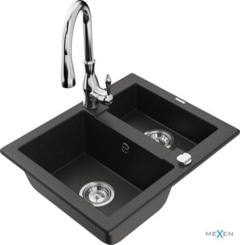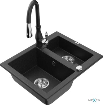 MEXEN/S MEXEN/S – Carlos granitový drez 1.5 vrátane batérie Savita, čierna/strieborná metalík 6518-73-672601-70
