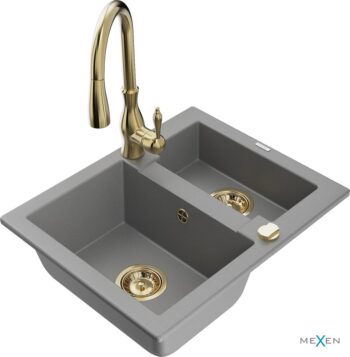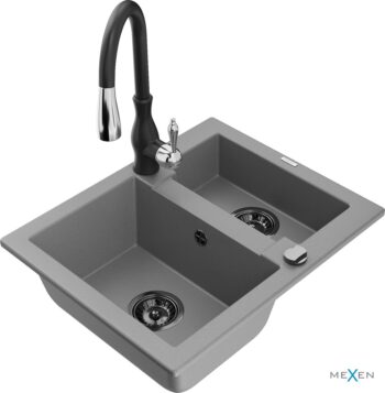 MEXEN/S MEXEN/S – Carlos granitový drez 1.5 vrátane batérie Savita, šedá 6518-71-672601-70-B