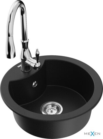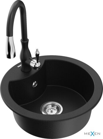 MEXEN/S MEXEN/S – Enzo granitový drez 1 s odkvapkávačom vrátane batérie Savita, čierna 6506-77-672601-70