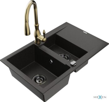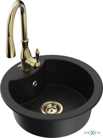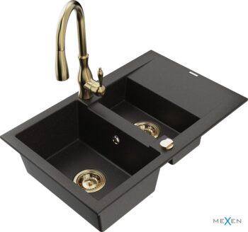 MEXEN/S MEXEN/S – Gaspar granitový drez 1.5 s odkvapkávačom vrátane batérie Savita, čierna/zlatá 6507-75-672601-70
