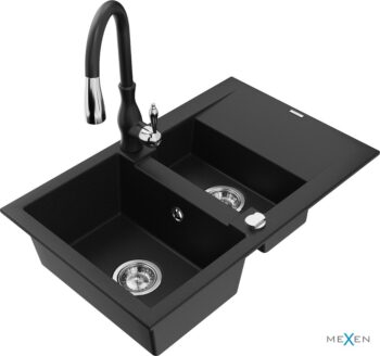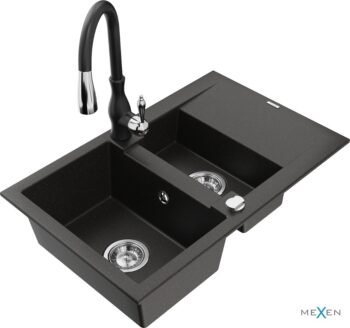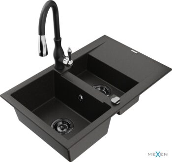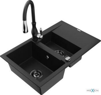 MEXEN/S MEXEN/S – Gaspar granitový drez 1.5 s odkvapkávačom vrátane batérie Savita, čierna 6507-77-672601-00